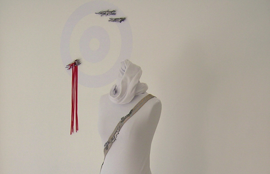 June 26, 2013 Tracey Clement, ‘Shrapnel’, installed in SafARI, 2006. Tracey Clement, ‘Sharpnel’ (bandolier detail), 2006, stainless steel, sterling silver, 1500mm long. Tracey Clement, ‘Shrapnel’, installed in SafARI, 2006. Share this: Click to email a link to a friend (Opens in new window) Email Click to share on Facebook (Opens in new window) Facebook Click to share on X (Opens in new window) X Click to share on LinkedIn (Opens in new window) LinkedIn Click to share on Reddit (Opens in new window) Reddit Like Loading...