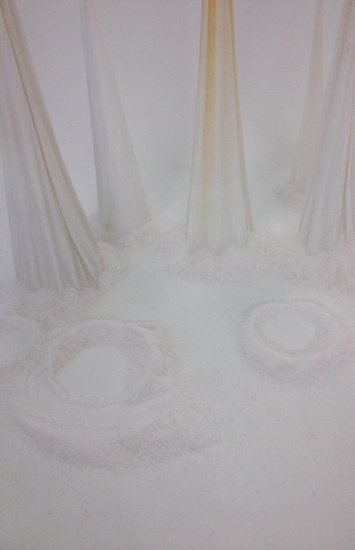 Tracey Clement, work in progress, 2014, salt, rusty steel, cotton, dimensions variable.