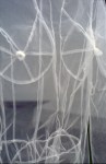 Border Zones consists of two sculptures: Border Zones (seven life-sized tulle figures) and Perimeter (a double blanket made from thread, buttons and pins).